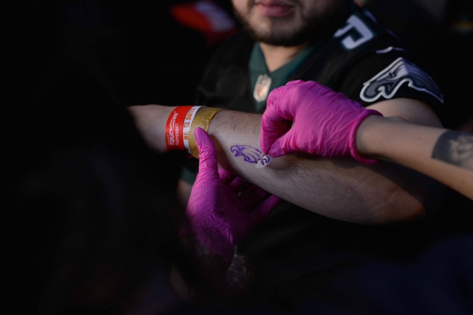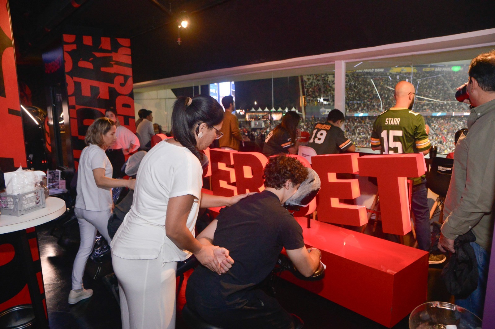 Para quem queria eternizar a experiência, o espaço de tatuagem permitiu que os convidados levassem para casa uma lembrança na pele do primeiro jogo da NFL na América Latina.
